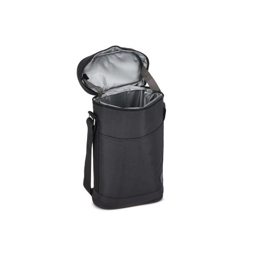 Sac isotherme pratique et sportif en rPET vert. Détails élégants en beige et noir. Un modèle qui peut être utilisé pour deux bouteilles de vin ou des bouteilles PET de 1,5 litre, par exemple. Il est doté d'une poignée et d'une bandoulière réglable.Matières :R- PET