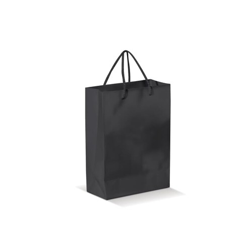 Grand sac papier avec anses tressées en blanc ou noir. Très résistant. Très grandes surfaces de marquage. Impression possible sur les 2 faces. Finition brillante.