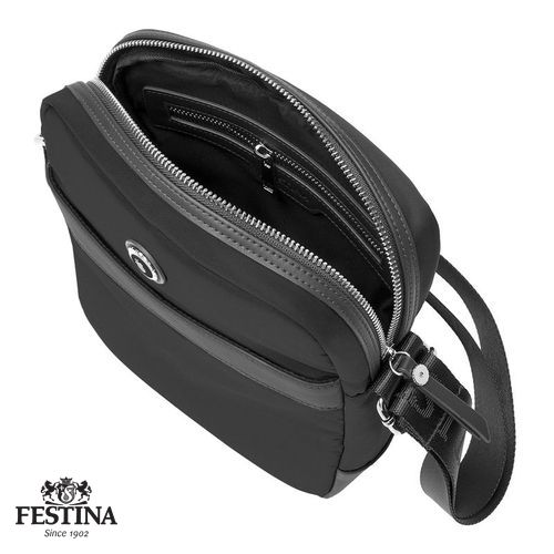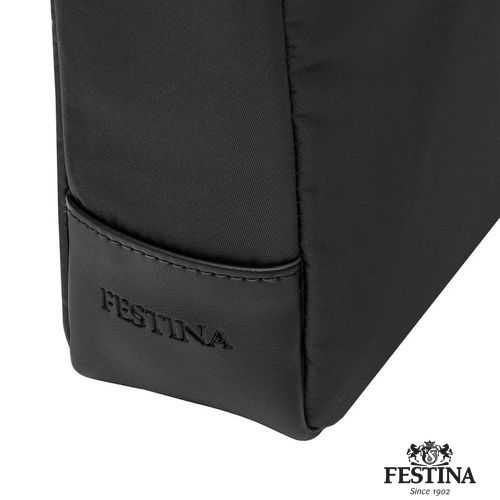 Le sac Button "Festina" est réalisé en nylon lisse avec des bordures texturées. La plaque de blazer Button surdimensionnée est empruntée à notre ligne éponyme de petits articles de maroquinerie. Des accents chromés et des détails métalliques luxueux Les accents chromés et les détails métalliques luxueux lui confèrent une touche finale élégante, tout en s'inscrivant dans une esthétique généralement décontractée. La ligne Button est disponible en deux couleurs : une version entièrement noire avec une plaque de signature émaillée, tandis que l'autre version mélange le nylon marine avec du cuir végétal marron et des garnitures chromées. Les deux versions ont une élégance décontractée et sont faciles à combiner. Chaque détail est délicatement travaillé, y compris les tirettes des fermetures à glissière, ornées du blason Festina, ainsi que la doublure Festina monogrammée. Les sacs Button reporter sont légers et compacts, mais aussi très fonctionnels avec leur compartiment intérieur zippé et leur poche plate à l'avant.