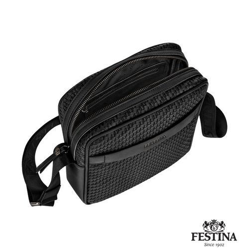 The Interlace reporter bag in black brings the line’s woven- inspired texture into a compact, functional silhouette. Crafted to resemble meticulous braiding and finished in a smooth matte, it expresses the collection’s depth and sophistication with a minimal, contemporary attitude. Signed details, including blazon- engraved zipper pullers, subtly elevate its refined character. Designed for effortless daily use, the bag features a practical front pocket, a zipped compartment inside, and a monogrammed lining that completes the interior with polished precision. The adaptable crossbody strap ensures comfort and versatility, while sleek gun accents anchor the piece firmly in the realm of modern elegance.