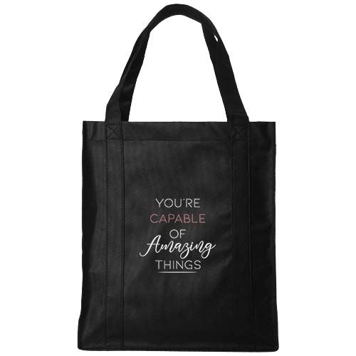 Le sac shopping Liberty est non tissé et possède une planche inférieure de soutien, ce qui en fait un sac shopping polyvalent et solide. Le grand compartiment principal offre suffisamment d'espace pour ranger divers articles, et les poignées de 25,4 cm de long rendent ce sac facile à porter. En plus de tout cela, les grandes zones d'impression sont idéales pour une visibilité maximale de tout logo. Peut supporter jusqu'à 12 kg.