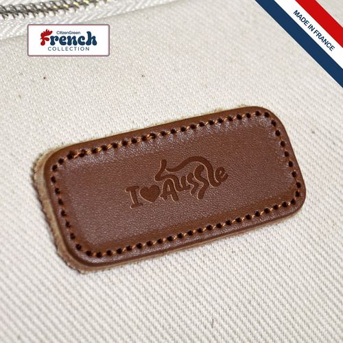Matières : coton biologique, cuir