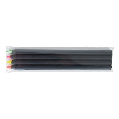 SACHET de 4 CRAYONS SURLIGNEURS PRESTIGE BLACK 17,6 cm, RONDs, VERNIS NOIR, tête coupée