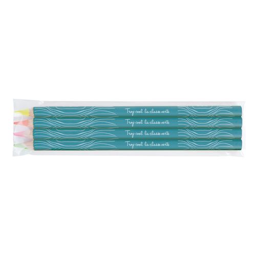 SACHET de 4 CRAYONS SURLIGNEURS PRESTIGE NATUREL 17,6 cm, RONDs, VERNIS PANTONE tête coupée