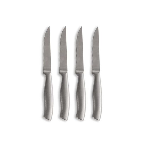 Chaque cuisine a besoin de couteaux à barbecue de qualité supérieure, tout simplement parce que les aliments ont bien meilleur goût lorsqu'ils sont faciles à couper en morceaux de taille moyenne. Les couteaux à barbecue Anton sont élégants, avec une bonne prise en main et une lame tranchante. Fabriqués en acier inoxydable avec une finition finement lavée à la pierre. Présentés dans un attrayant paquet de 4.Matières :Acier inoxydable