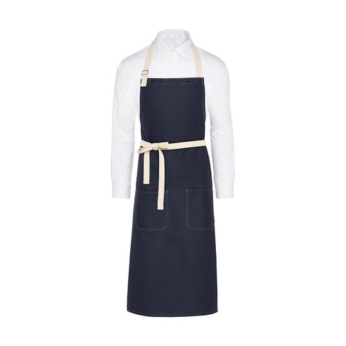 - Tablier bavette tendance avec surpiqûres contrastées et ceinture de couleur