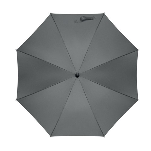 Parapluie tempête 23 pouces à ouverture automatique en pongee 190T avec mât en fibre de verre, manche plaqué noir et embouts en plastique. Poignée en ABS avec finition en caoutchouc. Fermeture manuelle.