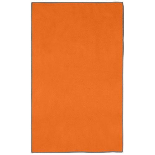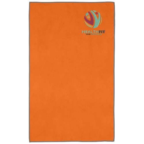 La serviette de sport Pieter absorbe très bien, est légère, sèche rapidement et le tissu est durable et extrêmement doux. Lorsque la serviette est pliée et fixée à l'aide de l'élastique, elle est réduite à une petite taille, ce qui permet de l'emmener à la salle de sport, à la piscine, ou de l'utiliser en randonnée ou en camping. D'une taille de 50 x 30 cm, la serviette est composée à 90 % de polyester recyclé certifié GRS et à 10 % de nylon. Elle peut être lavée en machine à 40 °C. Livrée avec une pochette de rangement (15,5 x 10 cm) en plastique PET recyclé, qui offre une surface idéale pour l'impression d'un logo.