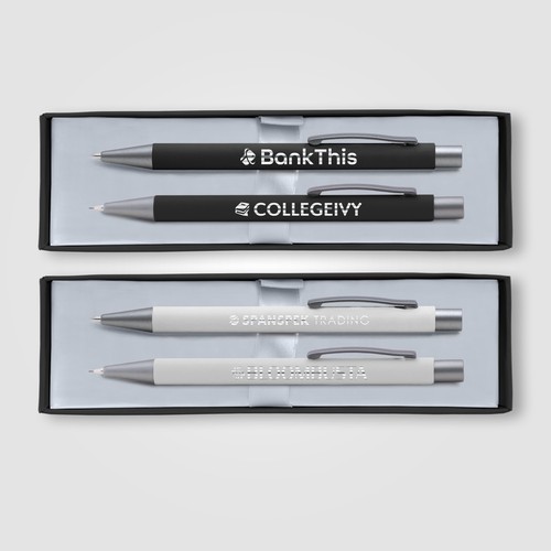 Voici le Set Bowie stylo Bille & Porte- mines, composé d'un stylo à bille Bowie et d'un porte- mine Bowie, tous deux dotés d'une finition caoutchoutée au toucher doux, disponibles dans un coffret cadeau artcard noir mat. Idéale pour les cadeaux d'entreprise ou les occasions spéciales, cette parure allie élégance et fonctionnalité.