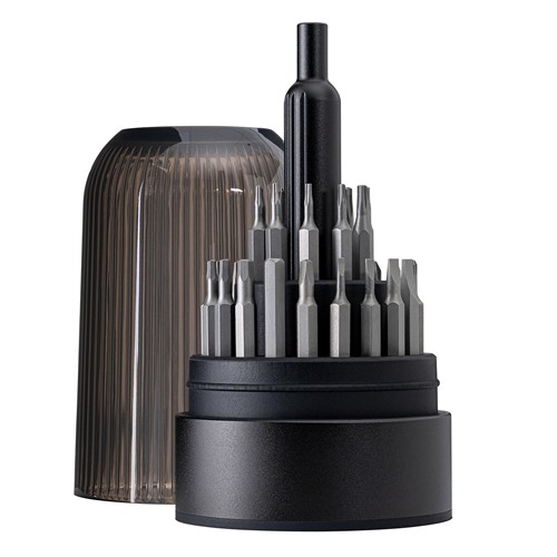 À l’intérieur, un système de rangement astucieux assure ordre et clarté. Le tournevis ergonomique tient parfaitement en main et permet un travail précis jusque dans les moindres recoins.