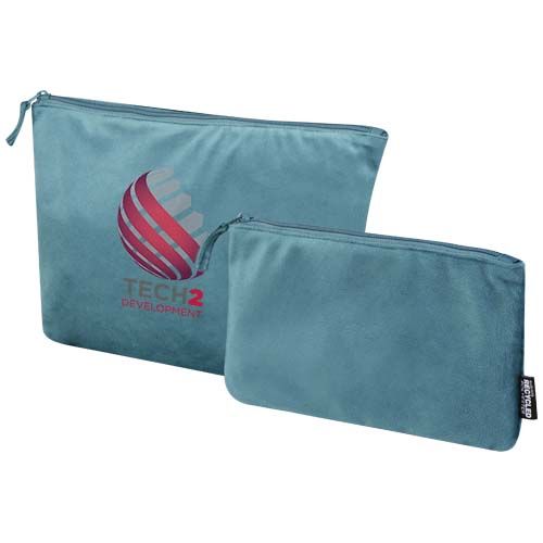 Set de 2 trousses de toilette en polyester velvet gomme recyclé certifié GRS. Le set comprend une grande et une petite pochette pour un rangement organisé. Léger, durable et facile à ranger dans un bagage. La grande pochette mesure 32 x 21 cm, la petite 23 x 13 cm.