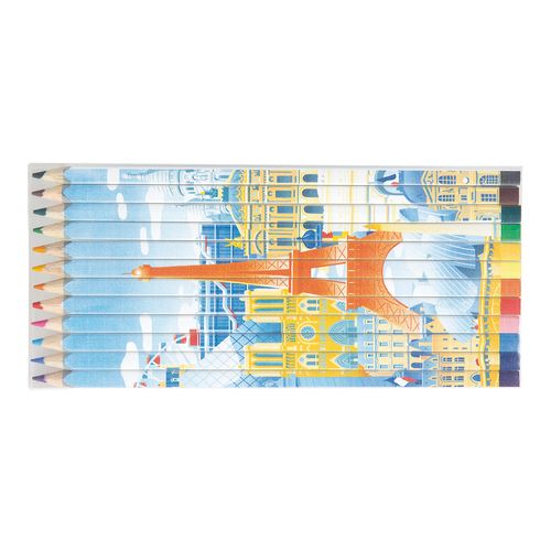 SET de 12 CRAYONS COULEUR carrés 17,6 cm, VERNIS BLANC