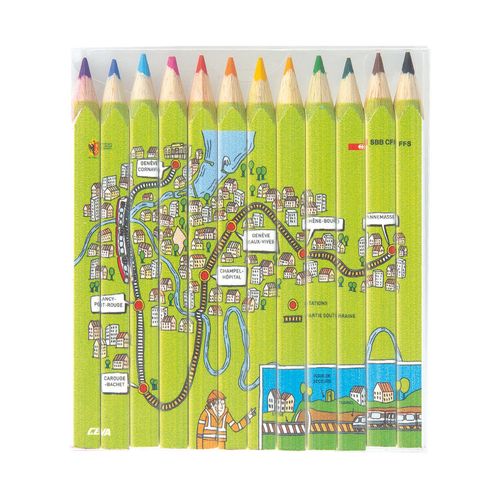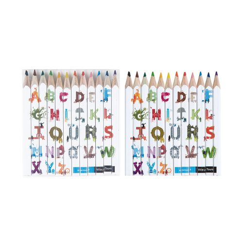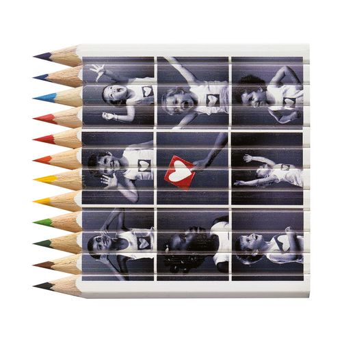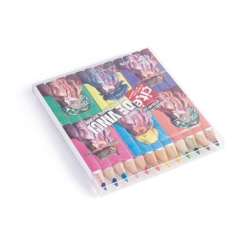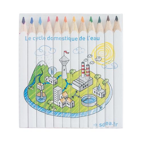 SET de 12 CRAYONS COULEUR carrés 8,7 cm, VERNIS BLANC