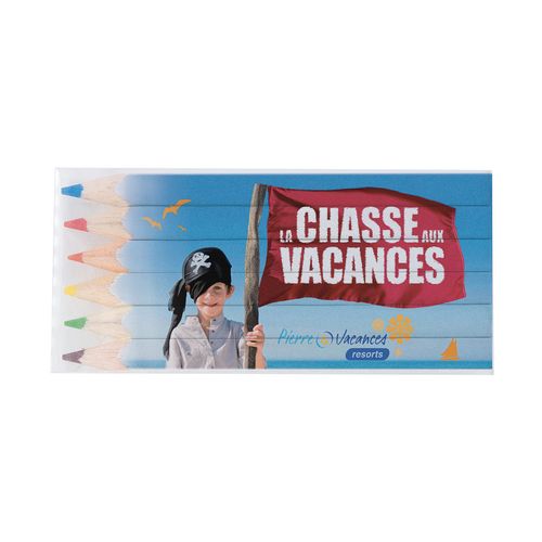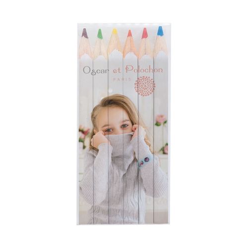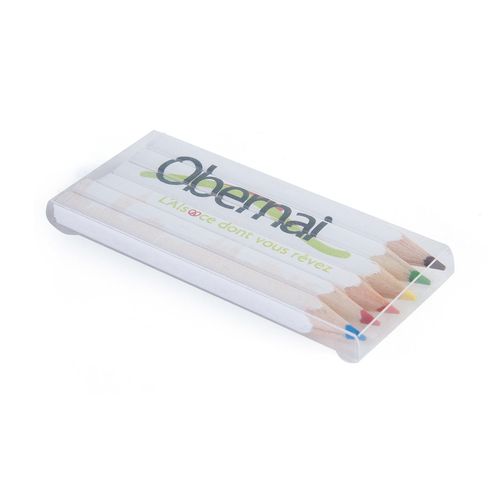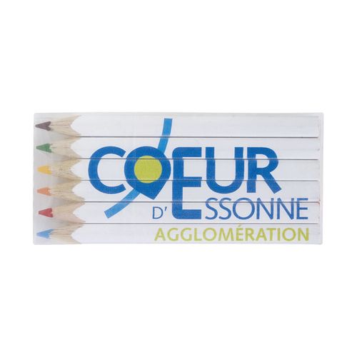 SET de 6 CRAYONS COULEUR carrés 8,7 cm, VERNIS BLANC