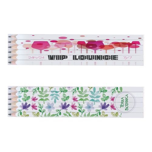 SET de 6 CRAYONS GRAPHITE, carrés 17,6 cm, VERNIS BLANC