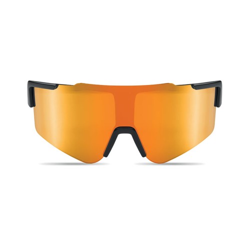 Lunettes de sport avec verres miroirs et monture noire. Protection UV400.