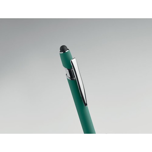 Stylo bille à poussoir en aluminium recyclé. Toucher gomme. Encre bleue.
