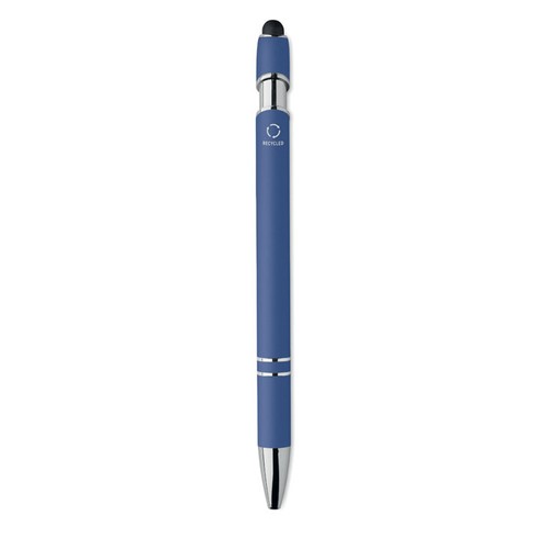Stylo bille à poussoir en aluminium recyclé. Toucher gomme. Encre bleue.