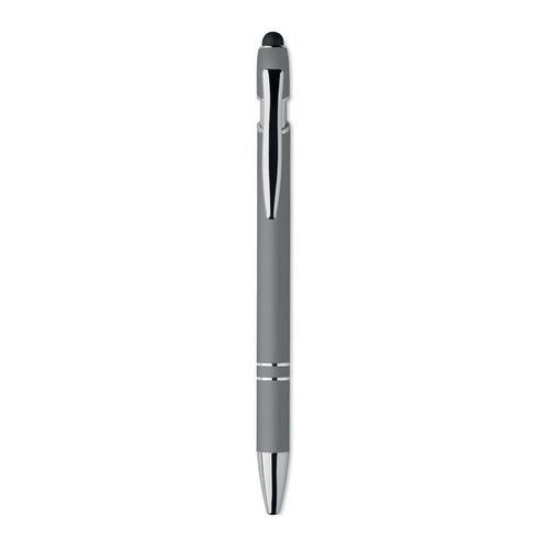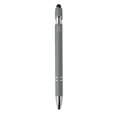 Stylo bille à poussoir en aluminium recyclé. Toucher gomme. Encre bleue.