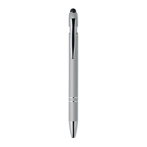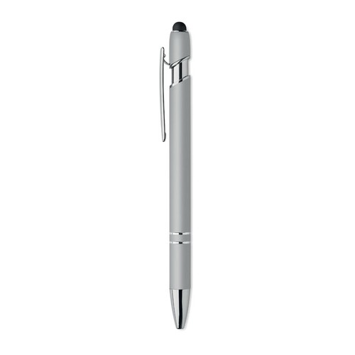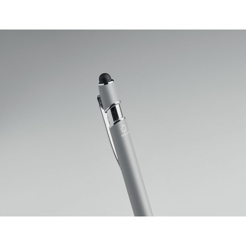 Stylo bille à poussoir en aluminium recyclé. Toucher gomme. Encre bleue.