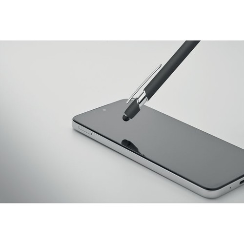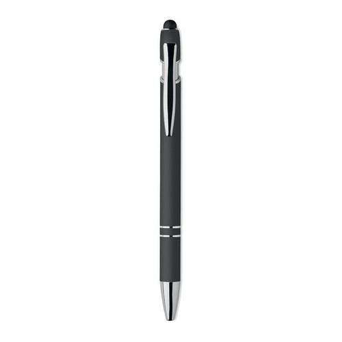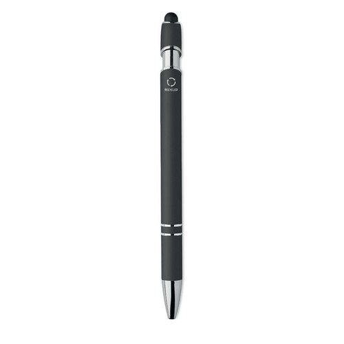 Stylo bille à poussoir en aluminium recyclé. Toucher gomme. Encre bleue.