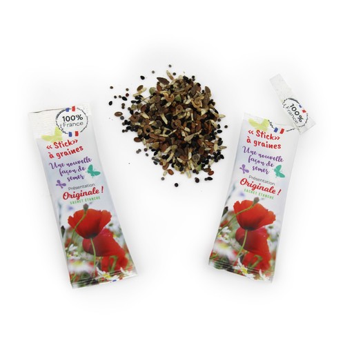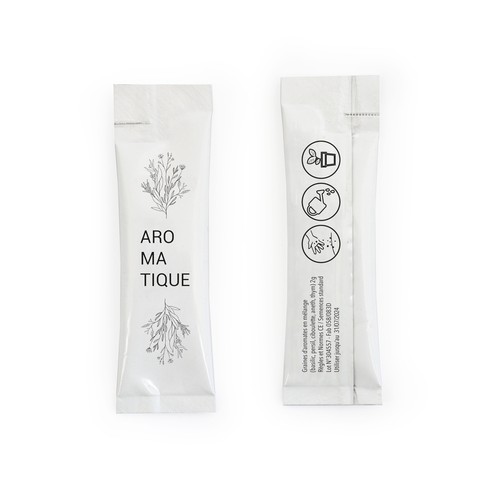 • Sachet graines en forme de stick en papier/PE thermosoudé avec ouverture facile (2gr de graines)
