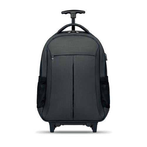 Sac à dos trolley avec dos renforcé en 360D, compartiment pour portable 15'', pochette zippée intérieure et protection des roues pour éviter les salissures, renfort pour ordinateur et tablette.