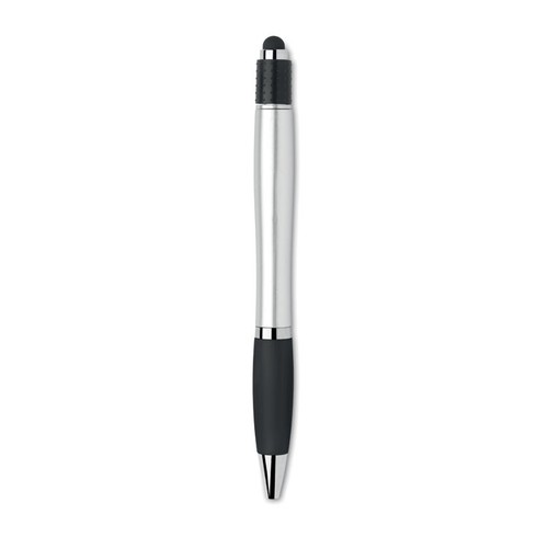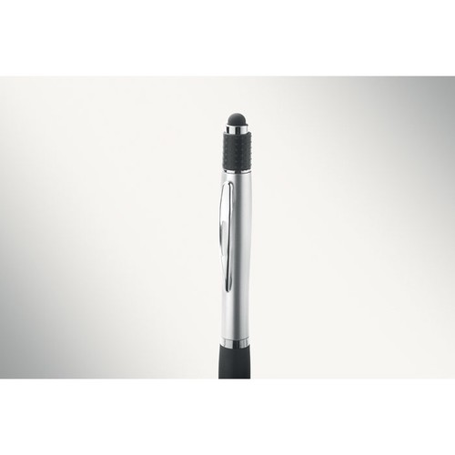 Stylo bille twist action stylus en ABS recyclé, fonction antistress spinner. Encre bleue.