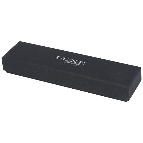 Stylo à bille à rotation avec corps en bois, en laiton chromé, livré dans une boîte cadeau Luxe. Dimensions du stylo à bille : 14,1 cm, 1,2 cm, poids : 26 g, longueur d'écriture : 1500 m.