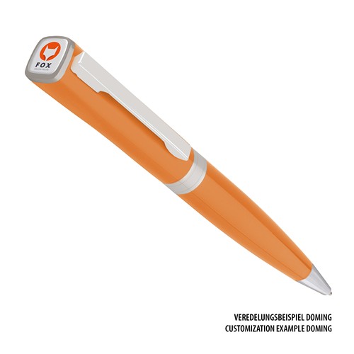Exclusif chez CLIC CLAC: ce stylo à bille qui porte votre logo a un véritable caractère de stylo de marque, grâce à un effet doming individuel raffiné. Le doming carré est fixé sur la tête du stylo.