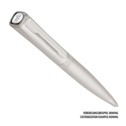 Exclusif chez REFLECTS : ce stylo à bille qui porte votre logo a un véritable caractère de stylo de marque, grâce à un effet doming individuel raffiné. Le doming carré est fixé sur la tête du stylo.
