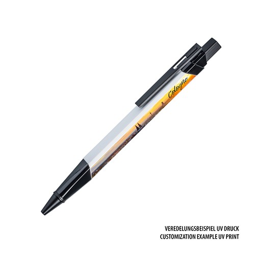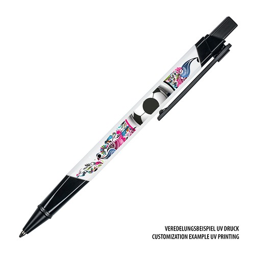 Le stylo à bille rétractable est disponible dans huit couleurs et tons pastel tendance et peut être transformé en un porteur de CI original et faisant de l'effet par impression UV REFLECTS de motifs au rendu photoréaliste sur trois surfaces de décoration possibles.