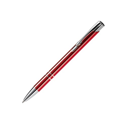 Elégant stylo bille en aluminium avec deux bagues sur le corps du stylo. Existe en couleurs mates et brillantes. Cartouche d'encre bleue en plastique. Gravure laser avec marquage tout autour ou aussi en gravure laser 2 ton. Audit BSCI . Tous nos produits sont testés et certifiés, et répondent aux normes sociales.