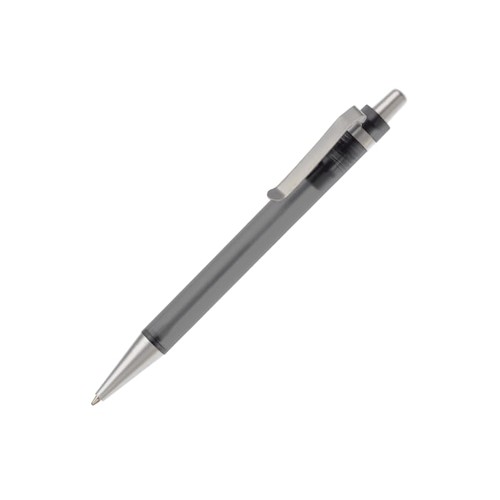 Stylo en plastique transparent avec clip en métal. Existe en plusieurs couleurs différentes. Cartouche d'encre bleue X-20. Mécanisme push. Marquage en tampographie et en sérigraphie. Audit BSCI. Tous nos produits sont testés et certifiés, et répondent aux normes sociales.