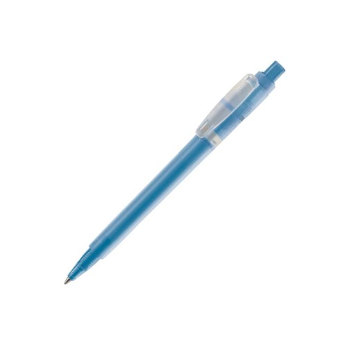 Stylo bille frosty avec un clip large. Frabiqué en Italie. Cartouche d' encre bleue Jumbo en plastique. Existe en une multitude de couleurs mais à partir de 5.000 pces, il est possible de composer les couleurs de son stylo. 2 techniques de marquage différentes : tampographie et sérigraphie. Tous nos produits sont testés et certifiés, et répondent aux normes sociales.