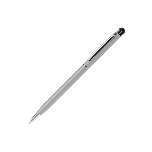 Stylo bille moderne en aluminum avec stylet pour les écrans tactiles. Mécanisme twist. Cartouche d'encre bleu. Il existe en 9 couleurs et peut être personnalisé avec différentes techniques de marquages ( gravure laser, tampographie et sérigraphie). Tous nos produits sont testés et certifiés, et répondent aux normes sociales.