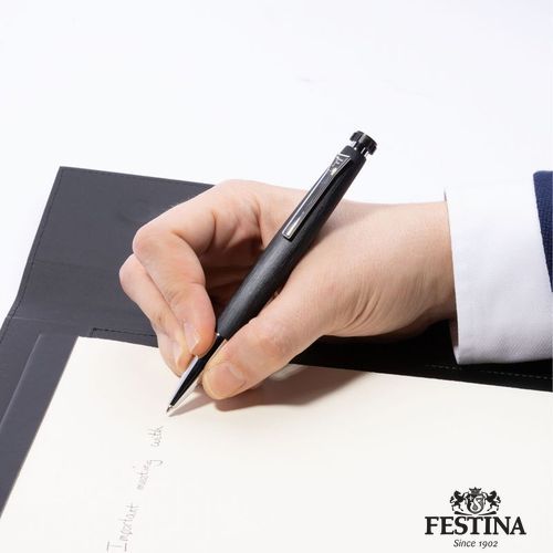 Combinant un métal noir mat à la texture brossée et des détails chromés, le stylo- bille Chronobike, avec sa forme ogivoïdale unique faisant écho à l'horlogerie, associe une allure sportive à une sensation de finesse.