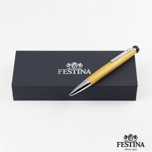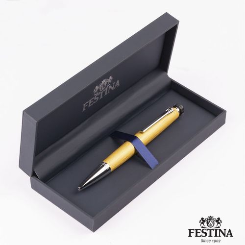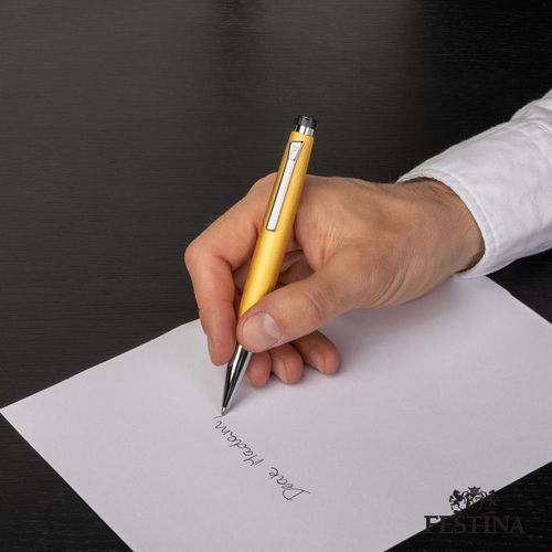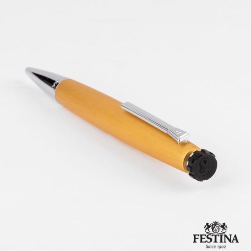 Combinant un métal de couleur jaune à la texture brossée et des détails métalliques de couleur chrome, le stylo- bille Chronobike, avec sa forme ogivoïdale unique faisant écho à l'horlogerie, associe une allure sportive à une sensation de finesse.