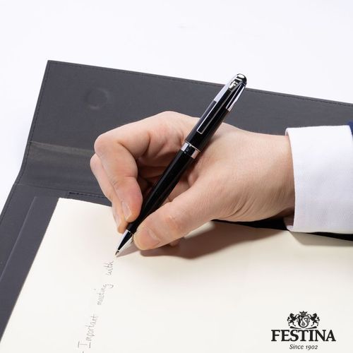Le stylo bille Classicals représente une pureté mesurée avec sa structure lisse et harmonieuse. Ce design élégant joue sur le contraste entre la laque noire brillante et les accents métalliques chromés pour un rendu esthétique.