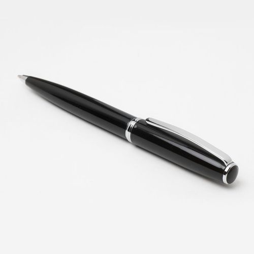 La ligne intemporelle Coimbra est composée d'un stylo bille laqué noir brillant orné d'accents chromés et d'une chemise à texture douce noir mat subtilement travaillée.