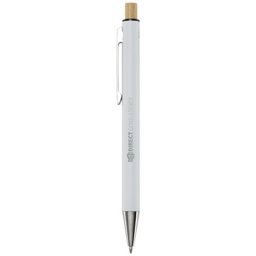 Le stylo bille Cyrus est fabriqué à partir d'aluminium recyclé, ce qui nécessite moins d'énergie que la production d'aluminium à partir de matières premières. Il réduit également la quantité de déchets dans les décharges et contribue à la conservation des ressources naturelles en vue de réduire les émissions de gaz à effet de serre. Le bouton- poussoir est en bambou. Couleur d'encre : Bleue. Longueur d'écriture : 800 mètres. Taille de la plume : 1,00 mm.