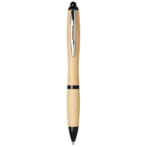 Stylo bille rétractable avec corps en bambou, rehaussé par une agrafe chromée et des finitions en plastique ABS. La couleur du bambou peut varier.