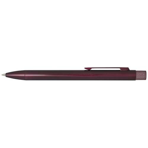 Stylo bille avec revêtement coloré. Le bouton et la pointe sont en laiton, le corps est en laiton recyclé et le clip est en fer. Couleur de l'encre : Bleue. Longueur d'écriture : 1 000 mètres. Taille de la pointe : 1 mm. Livré dans un coffret cadeau.