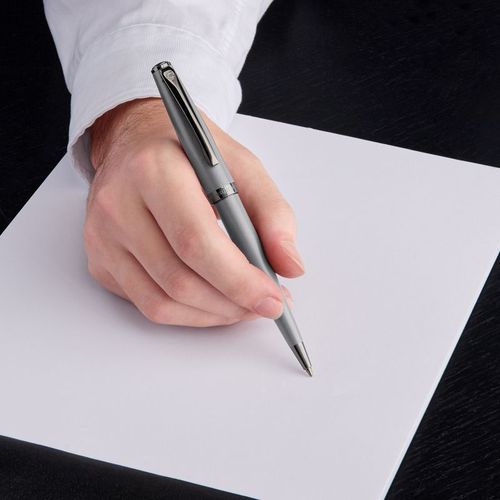 Pièce emblématique de la série Cerruti 1881 Islington, ce stylo à bille présente une finition élégante gris mat complétée par des garnitures en bronze. Fin, fonctionnel et universel, il est orné d'un logo CRR sur le clip, illustrant l'engagement de la ligne en faveur d'un luxe discret.