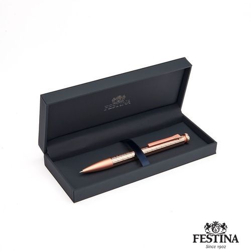 La ligne d'instruments d'écriture "Mademoiselle", avec sa silhouette épurée, reflète une féminité élégante avec des éléments raffinés, tout en conservant l'ADN du design des instruments d'écriture de Festina : textures innovantes, anneaux texturés et clip F emblématique. Cette édition "Diamant" de notre élégante silhouette est proposée avec des métaux monochromes, jouant sur les contrastes entre les surfaces brillantes gravées d'un motif biseauté emprunté aux coupes de cristal et les éléments mats. Disponible en Gun, or rose ou chrome