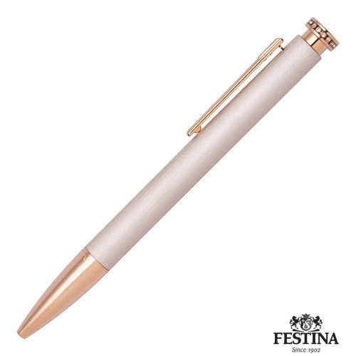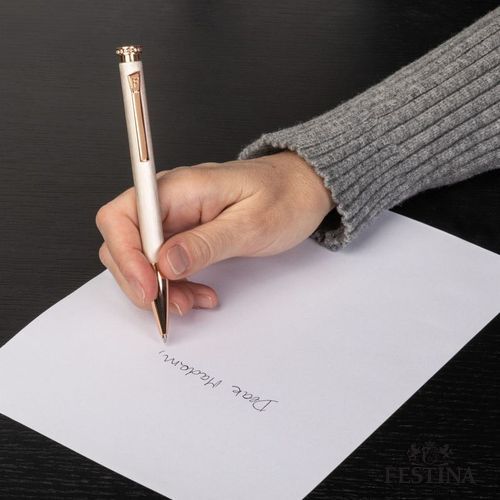 L'instrument d'écriture " Mademoiselle " a été conçu avec une certaine idée de la féminité élégante et moderne à l'esprit, tout en restant dans l'ADN du design des instruments d'écriture de Festina. La silhouette du stylo est élégante et équilibrée, avec une surface jouant sur le contraste entre les garnitures luxueuses en or clair et l'aluminium brossé moderne. Il est disponible dans une gamme de couleurs vibrantes. La touche finale est apportée par les pierres de cristal qui ornent le dessus, apportant une sensation de luxe à ce magnifique instrument d'écriture.
