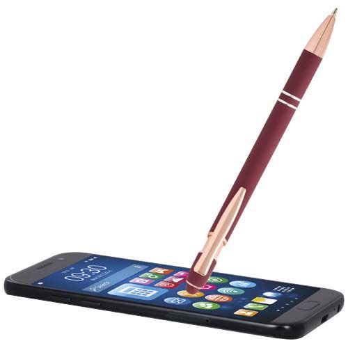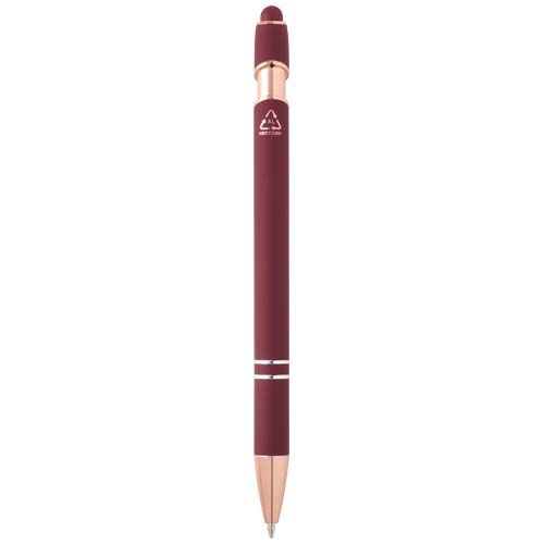Le stylo bille Nanna avec finition or rose est pourvu d’un corps en aluminium recyclé et d’un stylet tactile en silicone. L’aluminium recyclé réduit également la quantité de déchets dans les décharges et contribue ainsi à la conservation des ressources naturelles, tout en réduisant les émissions de gaz à effet de serre. Couleur de l'encre : Bleue. Longueur d'écriture : 800 mètres. Taille de la plume : 1,0 mm.
