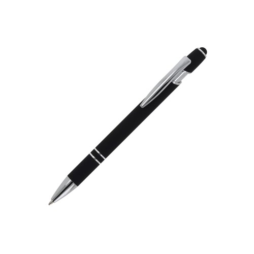 Stylo à bille en aluminium avec finition élégante au toucher doux et stylet. Clip en métal solide. Couleur d'écriture : bleu.