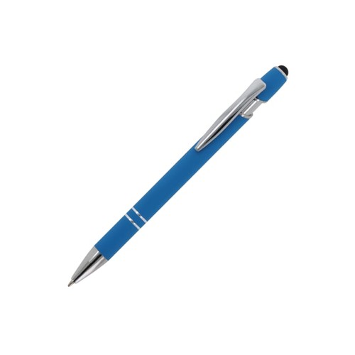 Stylo à bille en aluminium avec finition élégante au toucher doux et stylet. Clip en métal solide. Couleur d'écriture : bleu.