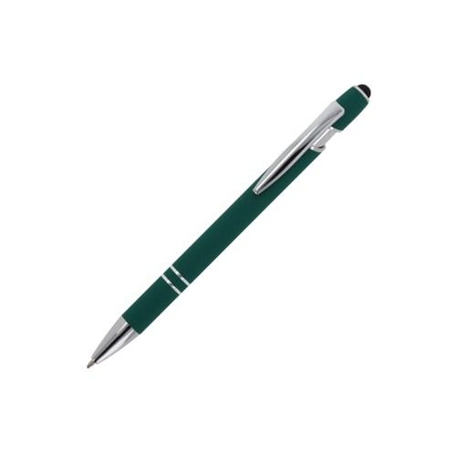 Stylo à bille en aluminium avec finition élégante au toucher doux et stylet. Clip en métal solide. Couleur d'écriture : bleu.